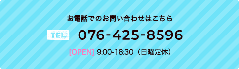 〒939-8014 富山県富山市中川原新町78-188[OPEN] 9:00-18:30(日曜定休)